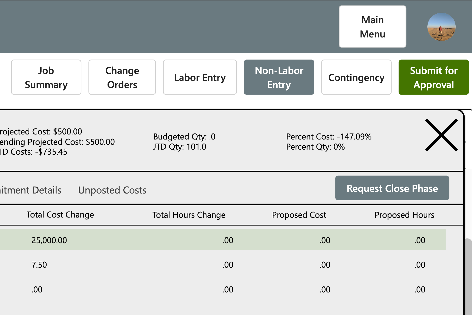 Spectrum makes it difficult to use the statuses of phases to be able to control costs to ensure that completed phases are not available for future costs. During the projection process you can request that a phase be closed. The list of close requests are reviewed during the final approval process, and if accepted then the app will post any changes to projected cost and then update the status automatically. Closed phases will still appear in the projection process for review in the future, but cannot be edited.